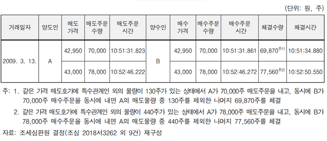 그러면서 양도소득세를 신고할 때는 불특정 다수인 간 일반 경쟁매매인 것처럼 신고했다.