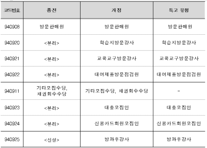 세법상 인적용역 업종코드가 고용보험의 특수형태근로종사자 유형과 일치되도록 업종코드가 분리‧신설됐다.