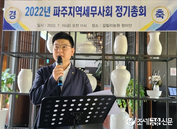 인천지방세무사회 김명진 회장은 축사를 통해 "파주지역세무사회의 정기총회 개최를 축하한다. 본회 및 각 지방회 총회도 대면총회로 진행됐다. 인천지방세무사회 총회에는 회원 90% 이상의 참석률로 개최했다"며 감사를 전했다.