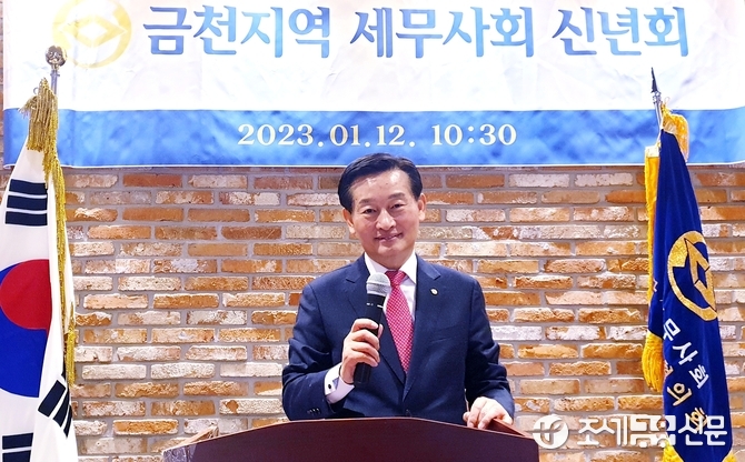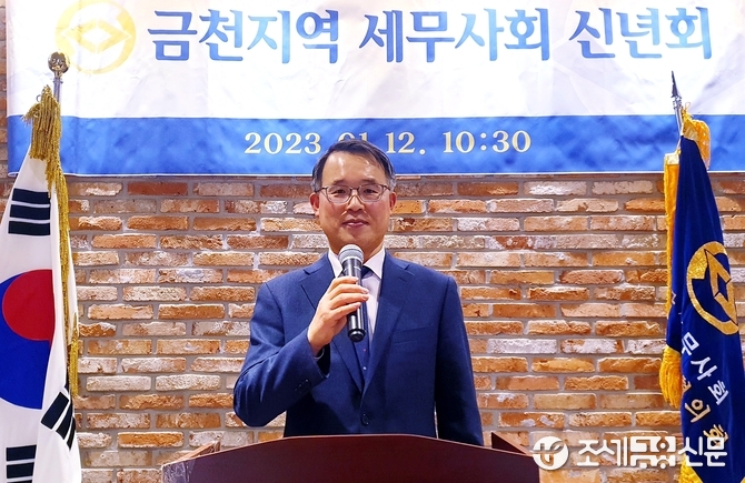 (조세금융신문=김영기 기자) 1월 부가가치세 확정신고를 앞둔 12일 서울 금천구 소재 시흥홈플러스 ‘마벨리에’에서는 역사와 전통을 자랑하는 금천지역의 세무사들이 속속 모여들었다. 바로 금천지역세무사회 ‘2023년 신년인사하례’에 참석하기 위해 76명이 이곳에 웅집했다.