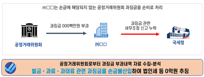 건설회사 ㈜□□ 등은 공정거래위원회부터 불공정하도급거래행위로 수 억원의 과징금을 납부하면서 이를 세금과 공과금으로 비용처리했다가 수억원의 세금을 부과받았다.