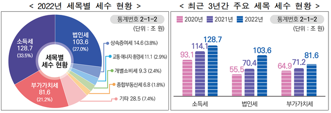 다만, 법인세의 경우 2021년(70.4조원)보다 47.1%나 증가했다.