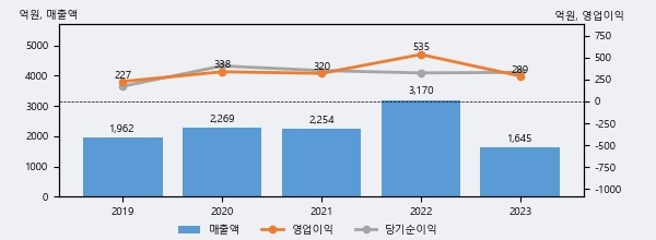 DMS의 2023년 매출액은 1645억으로 전년대비 -48.1% 하락했고, 영업이익 역시 289억으로 전년대비 -46.0% 하락했다. 이 회사의 매출액 증감률과 영업이익 증감률은 각각 코스닥 하위 5%, 하위 36%에 해당된다.