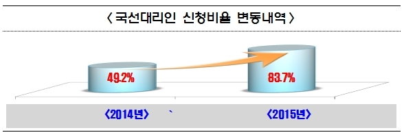 또한, 영세납세자의 국선대리인 신청비율도 제도 시행 첫해인 ‘14년 49.2%에서 작년에는 83.7%로 크게 높아지는 등 국선대리인 제도가 시행 2년만에 큰 성과를 거두고 있다.