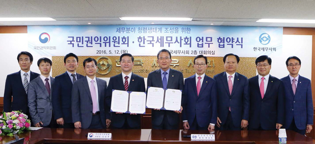 특히 최근에는 국민권익위원회와 반부패를 척결하고 청렴 문화 조성을 위한 업무협약을 체결하였습니다. 이제 세무사들이 보수교육이나 각종 교육시에 국민권익위원회 강사들이 참여해서 지속적으로 직업윤리의식에 관한 교육을 실시할 것이며, 보다 강력한 자정활동을 통해 우리 1만2천여 세무사 회원 스스로가 비리를 단절시키고, 국민들로부터 신뢰받고 사랑받을 수 있는 전문자격사로 발돋움 할 수 있도록 노력해 나가고 있습니다.