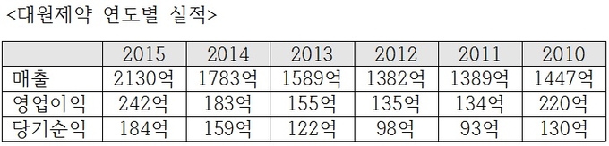 대원제약의 연간 법인세부담액은 ▲2010년 61.2억원 ▲2011년 32.8억원 ▲2012년 19.0억원 ▲2013년 30.6억원 ▲2014년 62.4억원 ▲2015년 71.4억원으로 2011년부터 2015년까지 단, 한 차례도 빠지지 않고 수정신고 등을 통해 추가납부를 했다.