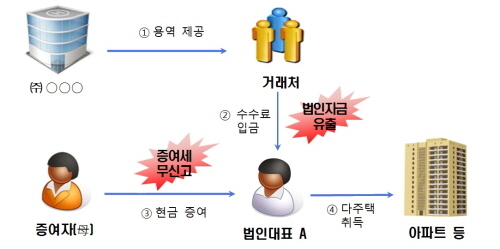 회사 대표 A는 회사가 거래처에서 받을 돈을 개인 계좌로 입금 받는 방법으로 회삿돈을 횡령했다. A는 횡령한 돈으로 강남구에 위치한 주택 3채를 샀다. 또, 모친으로부터 증여받은 현금의 일부를 부동산 취득 자금으로 사용하기도 했다. 회사 역시 A가 횡령한 돈만큼 만큼 법인 수입이 줄었고, 덕분에 법인세도 줄여 냈다. 국세청은 수십억원의 법인세와 소득세를 추징했다.