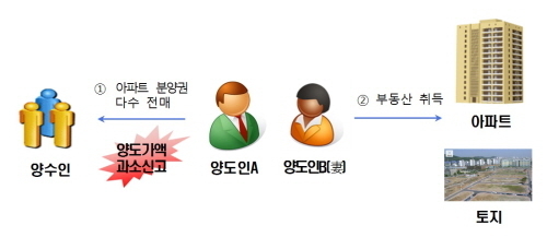 광주시에 사는 C씨는 고액의 프리미엄이 형성된 동탄2신도시, 전북혁신도시, 부산 등의 아파트 분양권을 사들이면서 분양권 양도소득을 탈루하기로 마음을 먹었다. 그는 자신과 배우자의 명의로 13차례나 거래하면서 다운계약서를 이용해 수억원의 양도소득세를 탈루했다가 적발됐다. 다운계약서란 계약서상 매매가격을 실제 매매가보다 낮추는 수법을 말한다. C씨는 세금이 계약서상 매매가를 기준으로 매긴다는 것을 악용한 것이다.