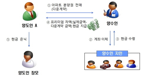 부산에 사는 D씨도 다운계약서를 작성해 분양권 프리미엄을 과소신고했다. D씨는 분양권 프리미엄을 현금으로 받아 장모명의 통장에 은닉했고, 매수인은 D씨에게 돈을 지불하면서 6명의 타인 명의 계좌를 이용하여 다운계약을 은폐하려 했다. 국세청은 프리미엄 누락에 대해 양도세 수천만원을 추징하고, 거짓 진술에 대해 과태료 처분을 내렸다.