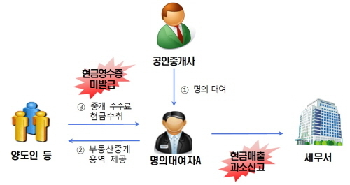 부산에서 부동산 중개업을 하는 E씨는 자신 외에 지인 명의로 부동산 중개 사무실을 다수 등록해 소득을 쪼갰다. 수입금액은 분산하고, 중개수수료 현금 수취분에 대해 현금영수증을 발행하지 않는 식으로 중개수수료를 신고 누락했다. 국세청은 누락한 현금매출에 대해 수억원을 추징하고, 명의대여에 대해 과태료 처분을 내렸다.