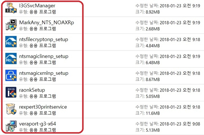 설치해야 하는 EXE 프로그램의 숫자도 많다. 가짓수로는 8개지만, 모듈 관리 프로그램 등 관련 프로그램이 동시에 설치되기에 실제 구동 프로세스는 십여개 이상이 된다.