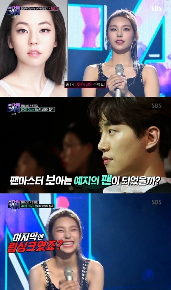 1일 방송된 SBS '더팬'에 2PM 준호의 추천을 받고 JYP엔터테인먼트 연습생 황예지가 출연한 가운데 그녀는 보컬과 퍼포먼스를 뽐낼 수 있는 무대를 준비해 선보여 현장 관객들을 환호케 했다.