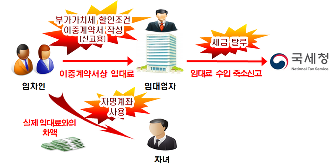 그는 임차인에게 부가가치세를 받지 않겠다며 실제로는 고액의 임대료를 받으면서도 계약서상으로는 낮게 쓰는 이중계약서 수법을 사용하다 누락한 소득은 자녀 이름의 계좌로 입금했다.