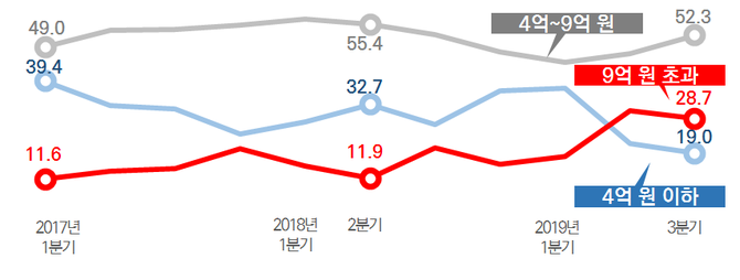 <17~’19년 서울지역 아파트 매매거래 가격대별 비중>