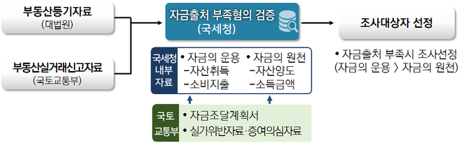 국세청은 금융조사 등 자금출처조사를 통해 조사대상자 본인의 자금원천 흐름은 물론, 필요 시 부모 등 친인척간의 자금흐름과 사업자금 유용 여부까지 추적할 계획이다.