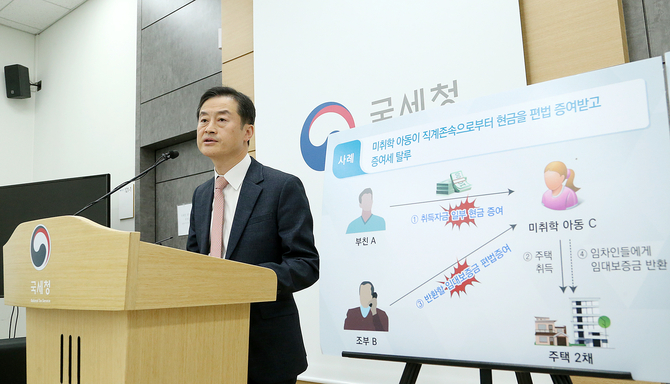 노정욱 국세청 자산과세국장은 “보유세 부담과 양도소득세 중과세를 피하기 위해 부담부증여를 통한 조세회피, 증여가액 축소를 통한 증여세 탈루 등에 대해서도 지속적으로 점검할 예정”이라며 “부동산・주식・예금 등 고액자산을 보유한 연소자 등에 대해서는 검증범위를 확대하여 탈세여부를 지속적으로 검증해 나갈 계획”이라고 설명했다.