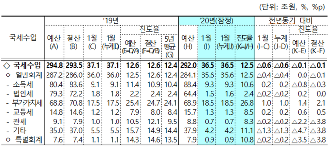 같은 기간 법인세와 관세는 기업실적 약화, 수입실적 감소로 각각 0.2조원씩 줄었다.