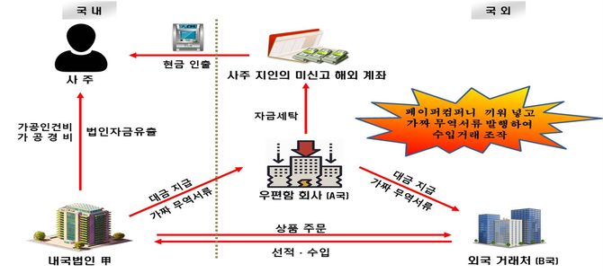내국법인 甲은 B국 거래처로부터 직접 제품을 수입했으면서도, A국 우편함 회사를 통해 고가에 제품을 수입한 것처럼 가짜 무역서류(Invoice)를 통해 회삿돈을 A국으로 유출했다.