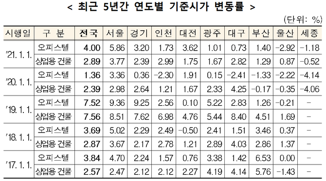 (조세금융신문=고승주 기자) 내년도 오피스텔 기준시가가 평균 4.00% 오른다. 올해 상승률 1.36%보다 두 배를 뛰어넘는 수치다.