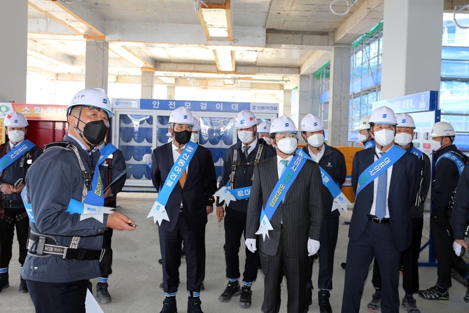 (조세금융신문=이정욱 기자) 신동아건설 김용선 회장이 25일 회사가 시공 중인 경기도 판교 행복주택 및 지식산업센터 신축공사 현장에서 대표이사 주관 하에 특별 안전점검을 가졌다.
