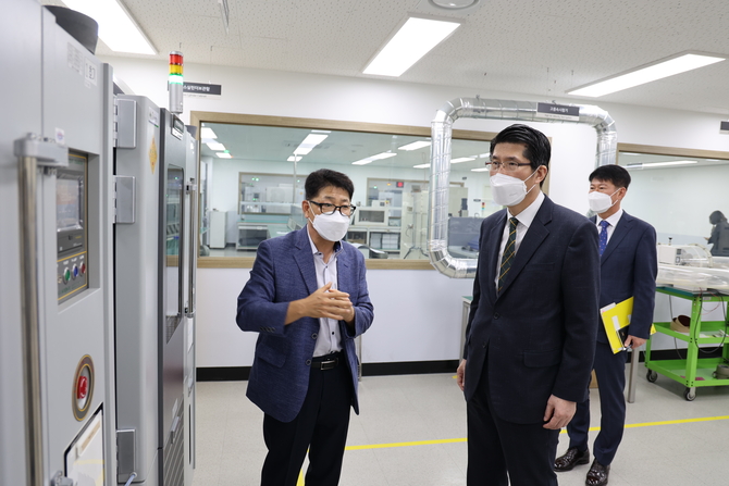 이날 김광호 세관장은 연구‧개발, 조립‧설치 등 제품 생산현장에서 수출 애로 사항과 업계 현황을 직접 파악하고, 임직원을 격려하며 적극적인 수출 지원을 약속했다.