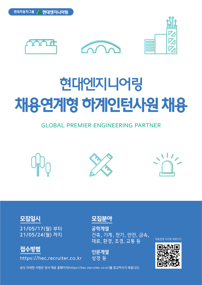 (조세금융신문=이정욱 기자) 현대엔지니어링이 2021년도 채용연계형 하계인턴사원을 공개 모집한다고 17일 밝혔다.
