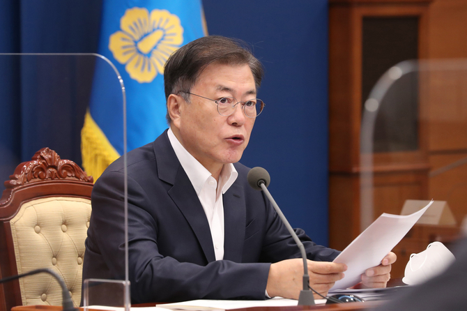 문 대통령은 "각국이 코로나 이후 주도권을 두고 치열하게 경쟁하고 있다"며 "미국과 유럽연합(EU) 등 선진국도 글로벌 공급망을 자국 중심으로 개편하고자 대규모 투자에 나서고 있다"고 설명했다.
