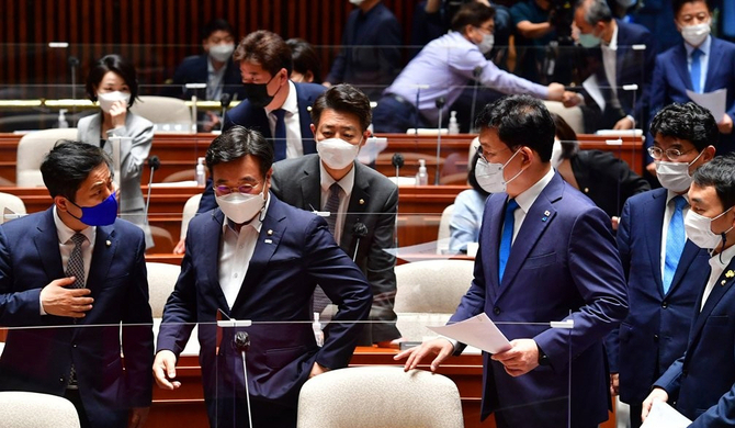 민주당은 이날 오후 비공개 정책 의원총회에서 온라인 표결을 거쳐 종부세와 양도세 완화안을 통과시켰다. 찬반비율은 밝히지 않았다.