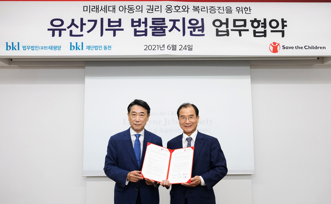 아동의 권리를 옹호하고 아동의 복리를 증진시키기 위한 협약으로 태평양과 동천은 앞으로 세이브더칠드런의 유산기부, 부동산기부, 고액기부에 대한 법률적 자문과 아동 권리 및 보호 관련 법률서비스를 제공한다.