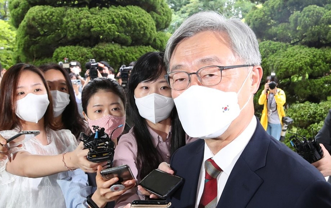 최 감사원장은 이날 오전 감사원에 출근하는 자리에서 거취에 대해 논란이 나오는 가운데 자신이 감사원장직을 계속 수행하는 것이 부적절하다고 판단했다며 이같이 밝혔다.