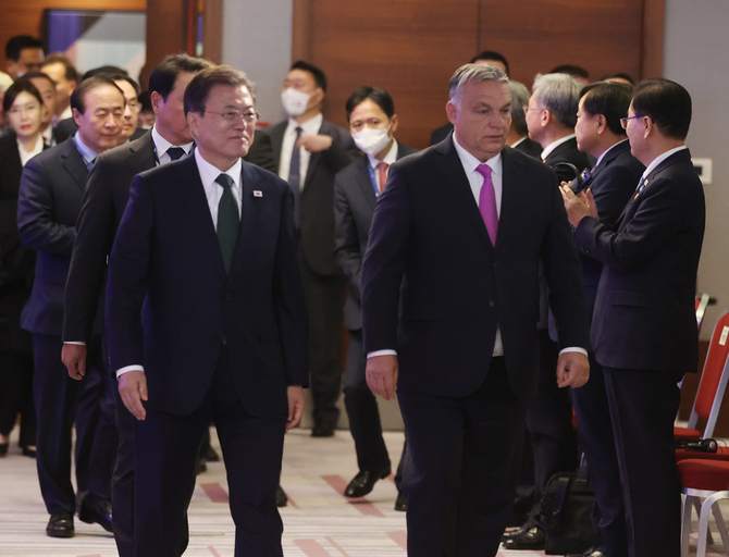 문 대통령은 "첨단 제조업에 강점을 가진 한국은 우수한 인력, 동서 유럽을 잇는 지리적 이점을 토대로 유럽에서 가장 역동적인 V4와 함께 성장하길 희망한다"면서 "유럽 시장을 넘어 세계로 함께 뻗어나가기 바란다"고 말했다.