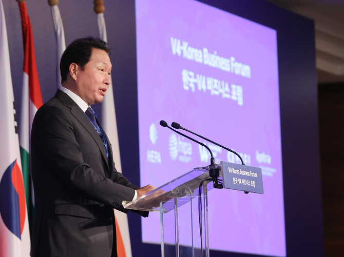 최 회장은 "한국과 V4의 파트너십이 그린 모빌리티 뿐만 아니라 친환경 에너지, 디지털·스마트 인프라 등 다양한 분야로 확장하도록 참석 기업인들이 활약해달라"고 요청했다.