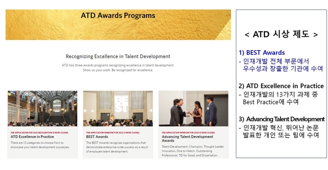 한편, 시상식은 오는 5월 미국 플로리다주 올랜도에서 개최되는 세계 최대의 인재개발 행사인 ‘2022 인재개발협회 학술회의’에서 진행될 예정이다.