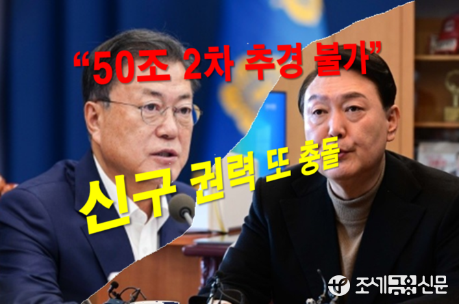 (조세금융신문=박청하 기자) 신구 권력간 인사 갈등과 법무부 업무보고 파행이 이어지고 있는 가운데 문재인 정부 임기 중에는 윤석열 대통령 당선인이 추진을 공식화한 50조원 규모의 2차 추가경정예산안은 불가하다는 입장을 보여 또다시 충돌이 예상된다.