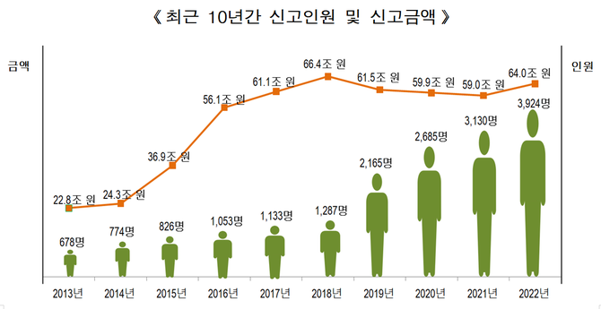 (조세금융신문=고승주 기자) 올해 5억원을 초과하는 해외금융계좌 신고자 수가 3924명, 신고금액은 64조원으로 집계됐다.