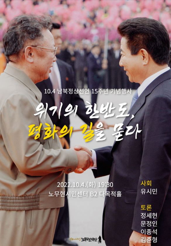 노무현 재단이 내달 4일 오후 7시30분 10‧4 남북정상선언 15주년 기념 토론회에서 평화의 해법을 논의한다.
