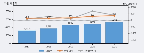 최근 3년간의 실적을 살펴보면 안정적 성장세를 보이고 있다. 최근 3년간 매출로 볼 때 매년 꾸준히 증가하고 있고 그 증가폭도 확대되고 있다.
