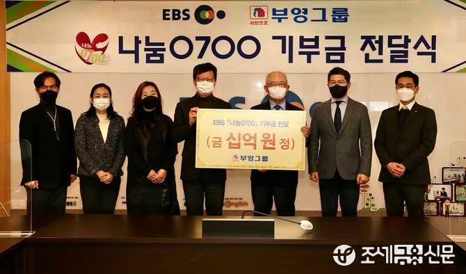 (조세금융신문=송기현 기자) 부영그룹이 EBS 사회공헌 프로그램인 '나눔 0700'을 통해 소외계층에 10억원을 후원했다.
