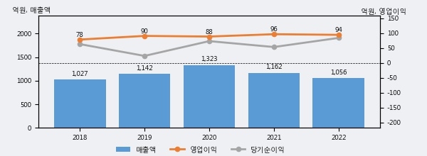 대아티아이의 2022년 매출액은 전년대비 -9.2% 줄어든 1056억원이고, 영업이익 역시 전년대비 -2.2% 줄어든 94억원을 기록했다. 이 회사의 매출액 증감률과 영업이익 증감률은 각각 코스닥 하위 18%, 하위 47%에 해당된다.