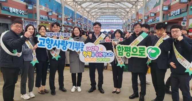 (조세금융신문=송기현 기자) 농협중앙회 함평군지부는 전남 함평군과 함께 설 명절을 앞둔 7일 전통시장을 찾아 고향사랑기부제 홍보와 전통시장 장보기 캠페인을 전개했다.