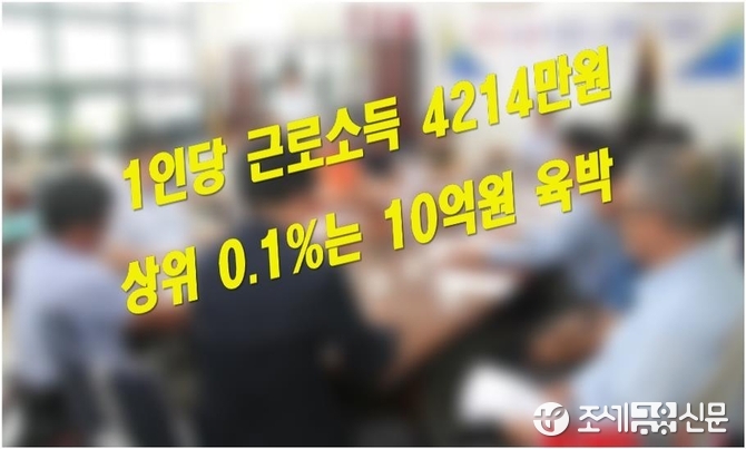 (조세금융신문=김종태 기자) 우리나라 근로소득자의 1인당 평균 연봉은 4,200만원 정도이며 이중 상위 0.1%를 차지한 2만여명의 평균 근로소득은 10억원에 육박한 것으로 나타났다.