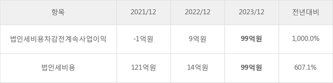 태양금속의 지난 3년 동안 법인세 납부액 추이를 보면 2022년에는 감소했으나, 작년에는 99억원으로 증가했다.