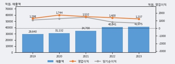 최근 3년간의 실적을 살펴보면 안정적 성장세를 보이고 있다. 최근 3년간 매출로 볼 때 매년 꾸준히 증가하고 있다. 다만 최근에 그 증가폭이 다소 감소하고 있다.