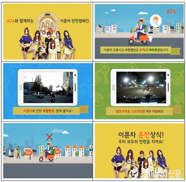 이에 손해보험협회와 서울청․서울시는 시민들의 이륜차 안전운전에 대한 의식 개선을 위해 'AOA와 함께 하는 이륜차 안전 캠페인' 홍보 영상을 제작․배포하기로 하였다.