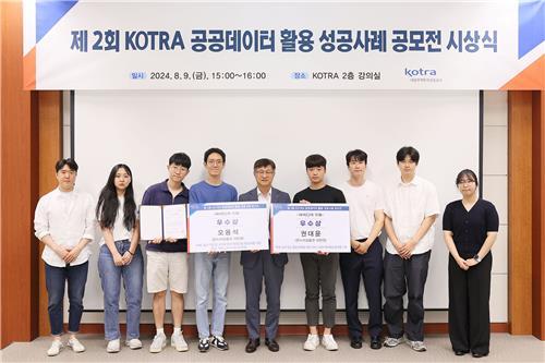 (조세금융신문=최주현 기자) 대한무역투자진흥공사(코트라)는 지난 9일 서울 서초구 본사에서 '제2회 코트라 공공데이터 활용 성공사례 공모전' 시상식을 열고 최우수상 2팀, 우수상 3팀 등 총 5개 팀을 시상했다고 11일 밝혔다.