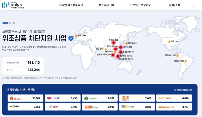 특허청은 이번에 K-브랜드 위조상품 유통 피해 정보를 국가별, 온라인플랫폼별 등 다양한 형태로 한눈에 파악할 수 있도록 개선했다.