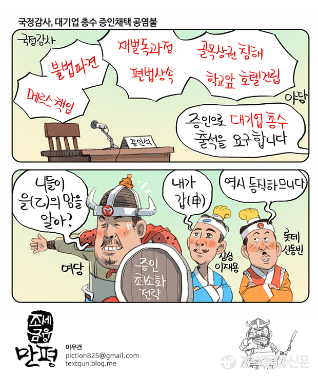 [조세금융 만평] 국정감사, 대기업 총수 증인채택 '공염불'