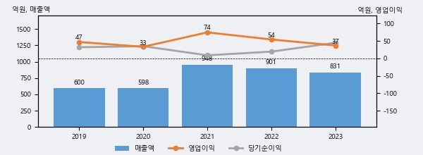 핑거의 2023년 매출액은 831억으로 전년대비 -7.7% 하락했고, 영업이익 역시 37억으로 전년대비 -32.0% 하락했다. 이 회사의 매출액 증감률과 영업이익 증감률은 각각 코스닥 하위 37%, 하위 42%에 해당된다.