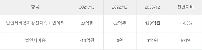 사업의 성장세에 따라 법인세 납부액도 늘어나고 있다. 아이쓰리시스템의 지난해 법인세 납부액은 7억원으로 2022년 0원보다 7억원(100%) 증가했다. 이는 실적 증가에 따른 당기순이익이 크게 늘었기 때문이며, 법인세 유효세율(법인세비용/법인세차감전순이익)은 5.3%를 기록했다.