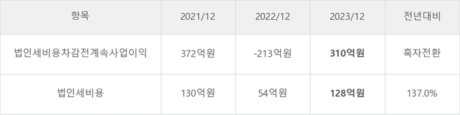 동양의 지난 3년 동안 법인세 납부액 추이를 보면 2022년에는 감소했으나, 작년에는 128억원으로 증가했다.